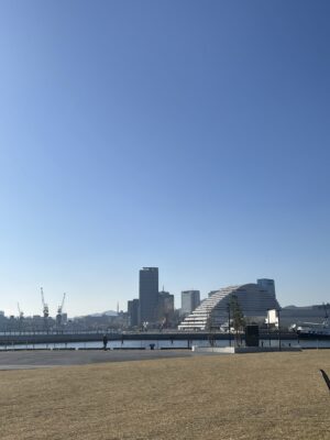 海沿いに広がるこの場所は、神戸の街と海を同時に感じる開放的な場所になっていて、海との距離感が心地よく、ただ「見る」だけでなく「過ごす」ことを前提に考えられ、ゆったりと過ごすことができ、居心地の良さを感じました。