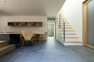 外部の視線を完全に遮る設計で、一日中カーテンを開けたままの開放的な暮らしを実現しています。光と風を取り込み、家族だけのプライベートな時間を豊かにします。